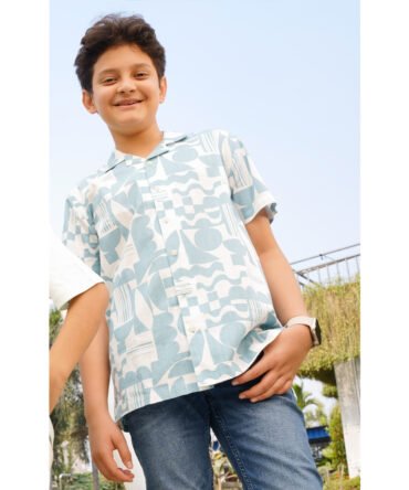 Boys Tropical Green Printed Shirt