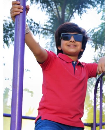 Boys Red Color Solid Polo Shirt