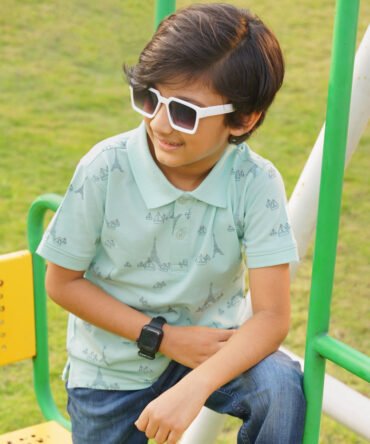 Boys Mint Color Printed Polo Shirt