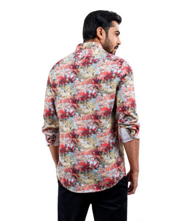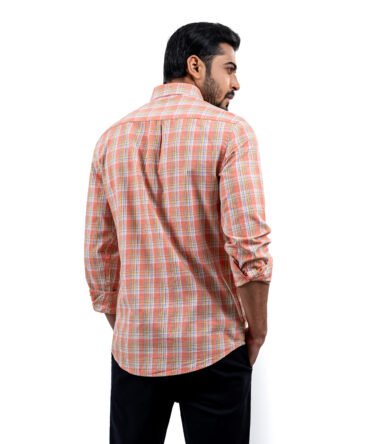 Men’s Dark Orange Color Texture Ultra Slim Fit Casual Shirt