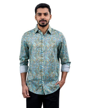 Men’s Lite Green Color Texture Full Sleeve Slim Fit Shirt