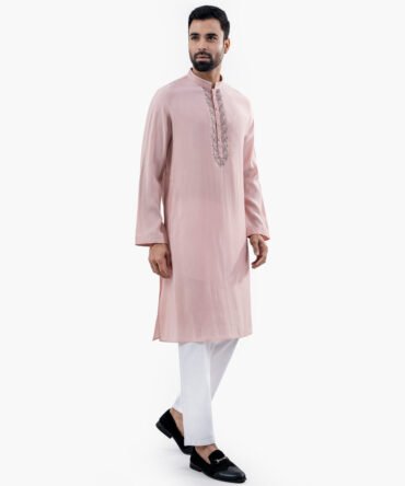 Pink Luxury Embroidered Regular Fit Panjabi by LUBNAN