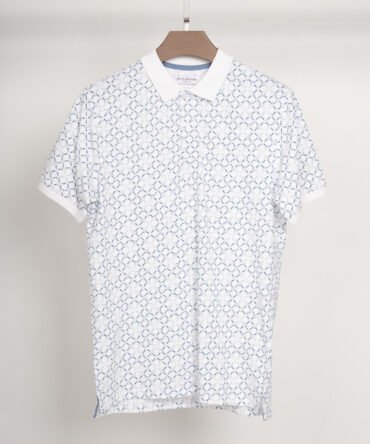 Richman White Color Printed Half Sleeve Polo Shirt