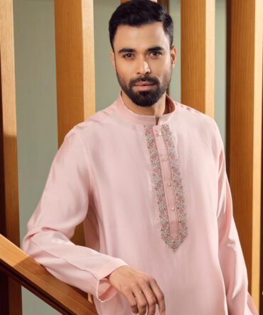 Pink Luxury Embroidered Regular Fit Panjabi by LUBNAN