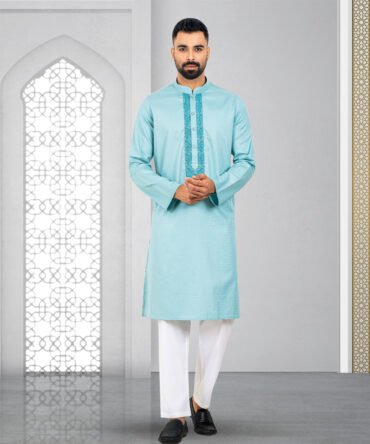 Bring a touch of tradition to your wardrobe with this Premium Panjabi. Made from 100% soft and breathable Imported Fabrics, it is perfect for any occasion. The Panjabi features gorgeous designs, adding a touch of elegance to the simple yet sophisticated design. The Blue color is neutral and versatile, making it easy to style. With a comfortable Regular fit, it is both practical and stylish. Available in sizes 38 to 46, you’re sure to find the perfect size for you.