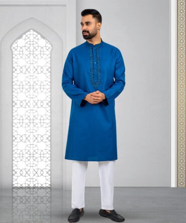 Bring a touch of tradition to your wardrobe with this Premium Panjabi. Made from 100% soft and breathable Indian cotton, it is perfect for any occasion. The Panjabi features gorgeous designs, adding a touch of elegance to the simple yet sophisticated design. The Navy color is neutral and versatile, making it easy to style. With a comfortable Regular fit, it is both practical and stylish. Available in sizes 38 to 46, you’re sure to find the perfect size for you.