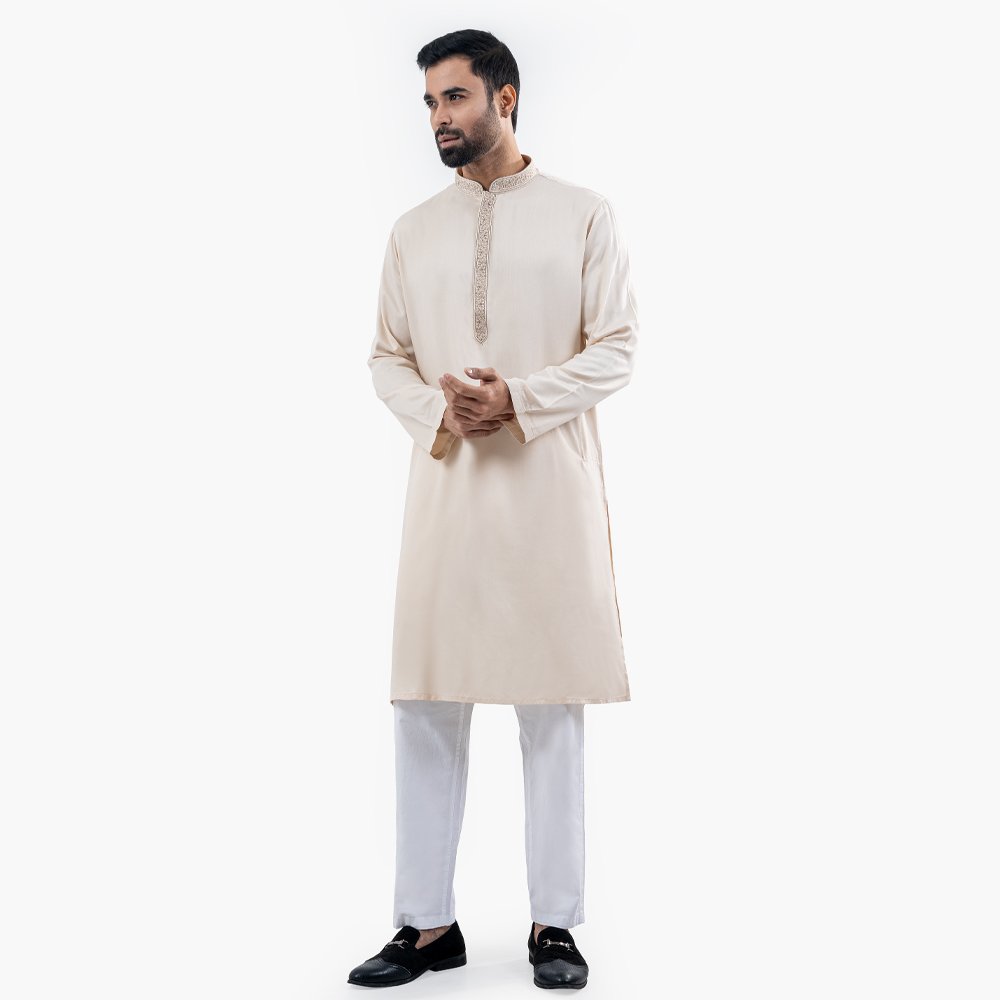 Bring a touch of tradition to your wardrobe with this Premium Panjabi. Made from 100% soft and breathable cotton, it is perfect for any occasion. The Panjabi features gorgeous designs, adding a touch of elegance to the simple yet sophisticated design. The Brown color is neutral and versatile, making it easy to style. With a comfortable Regular fit, it is both practical and stylish. Available in sizes 38 to 46, you’re sure to find the perfect size for you.