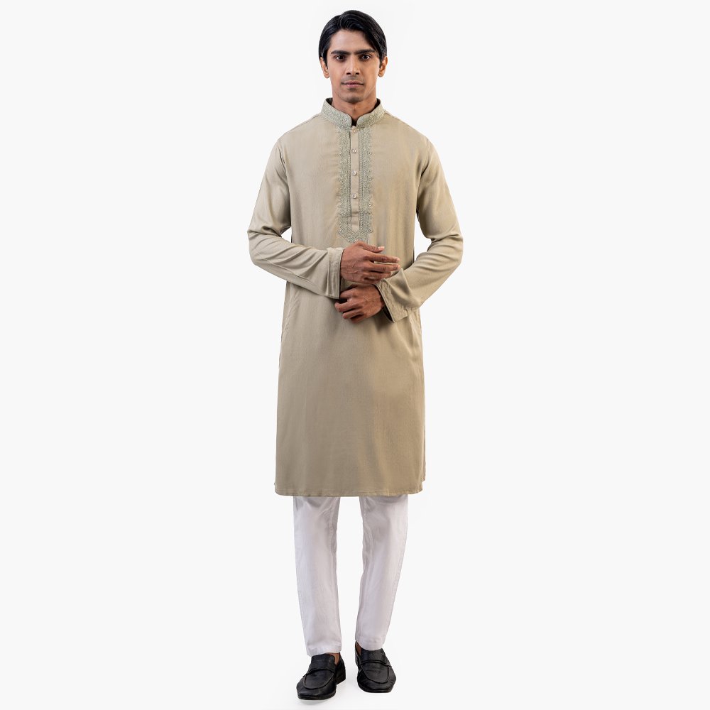 Bring a touch of tradition to your wardrobe with this Premium Panjabi. Made from 100% soft and breathable Indian cotton, it is perfect for any occasion. The Panjabi features gorgeous designs, adding a touch of elegance to the simple yet sophisticated design. The Navy color is neutral and versatile, making it easy to style. With a comfortable Regular fit, it is both practical and stylish. Available in sizes 38 to 46, you’re sure to find the perfect size for you.