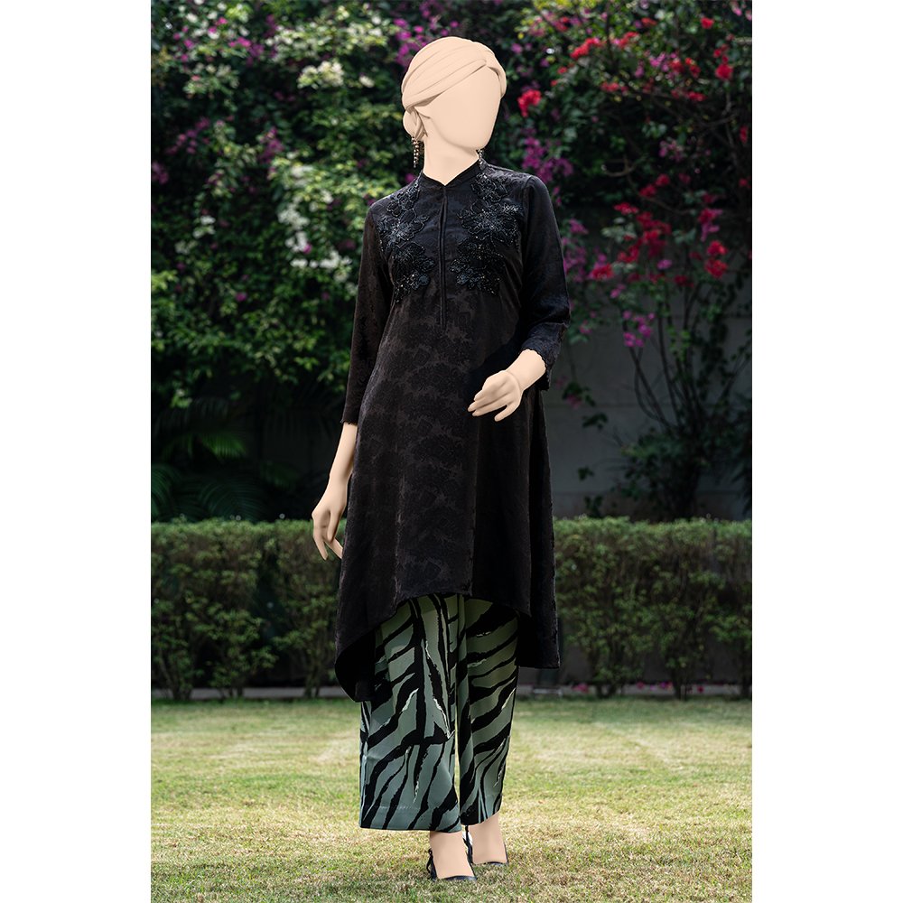 This black single kameez is a must-have for any fashion-forward wardrobe. The shimmering sequin details catch the light beautifully, making it an ideal choice for Eid, weddings, parties, and special occasions. Pair it with your favorite leggings, palazzos, or traditional dupattas to create a stunning look effortlessly.